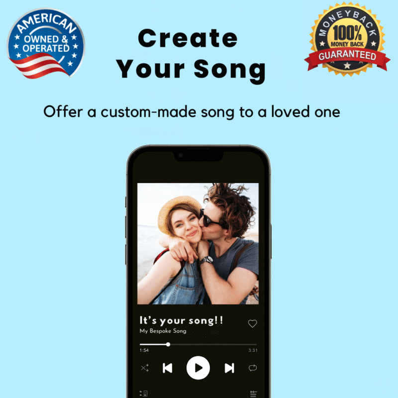 It’s a unique, radio-quality song created just for you based on your stories, memories, and ideas. Our talented community of singers, songwriters, and musicians will write and record your custom song in 12 hours or less.